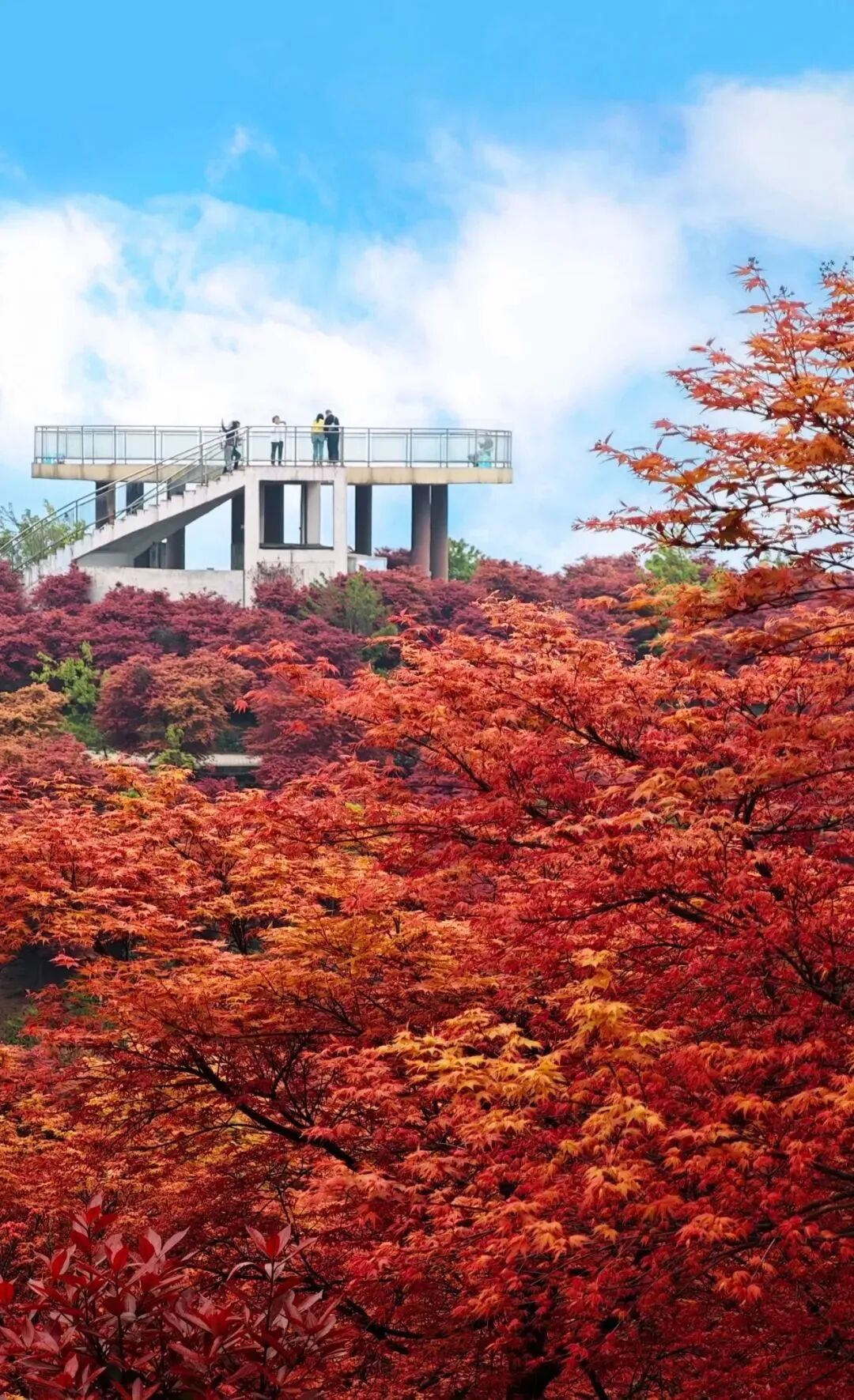 松木嘴的红枫一年中有两次变红的过程春季已经火爆出圈秋季经过低温洗礼再次变红青山间一片醒目的红从高处瞭望显得尤其壮观此外,巴南的丰盛彩色森林五洲园、南湖多彩植物园等也是赏秋人气去处!