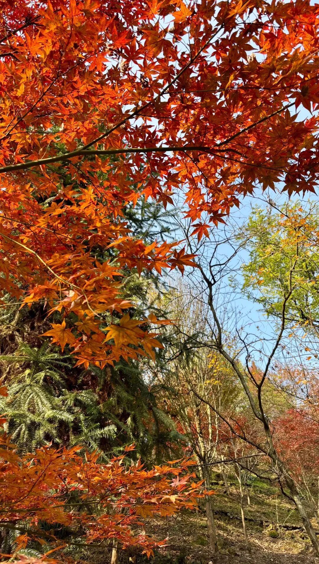 10月底至11月底3500亩林地进入最佳观赏期 金叶皂角、红枫等林木 铺设出两条绵延十公里的多彩长廊 赤橙黄绿交织 风过处彩叶纷飞 宛如闯入油画世界 随手一拍都是秋日大片
