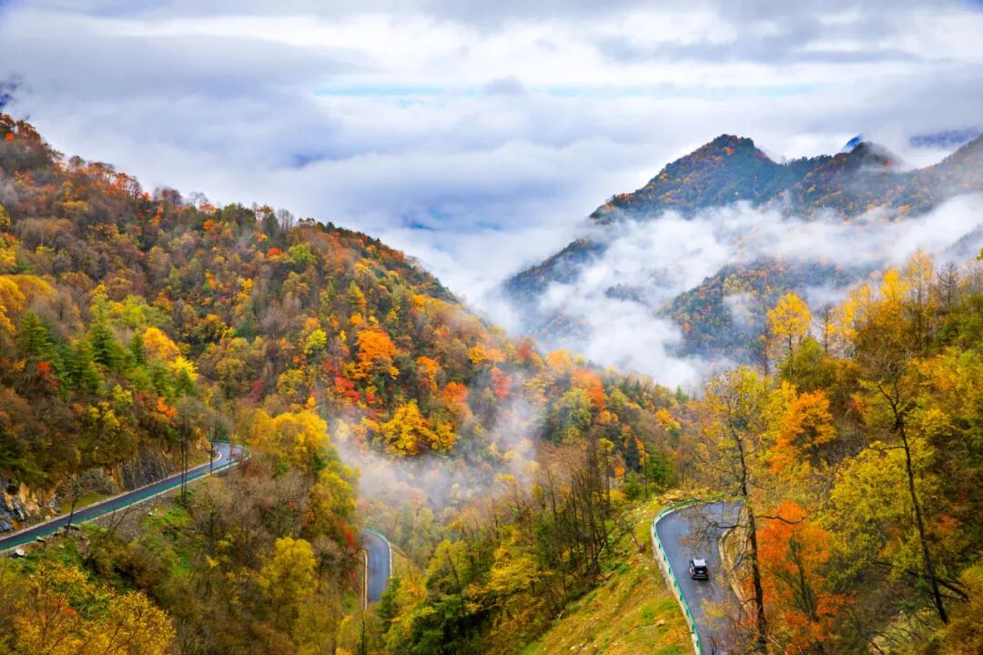 大巴山深处由赤橙黄绿青蓝紫勾勒出一幅幅山水景色云海时常在彩叶林间穿梭宛如仙境让人彻底迷醉在这一片诗情画意里