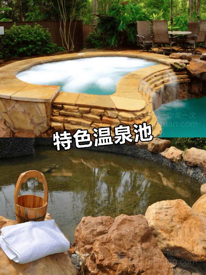 ♨️特色泡池:山庄有1个大的游泳池、7个小的温泉池,还有2个鱼疗池、1个盐疗池等。