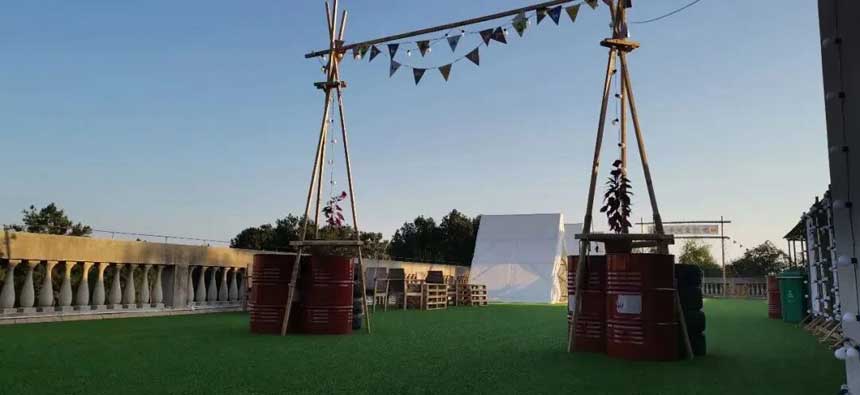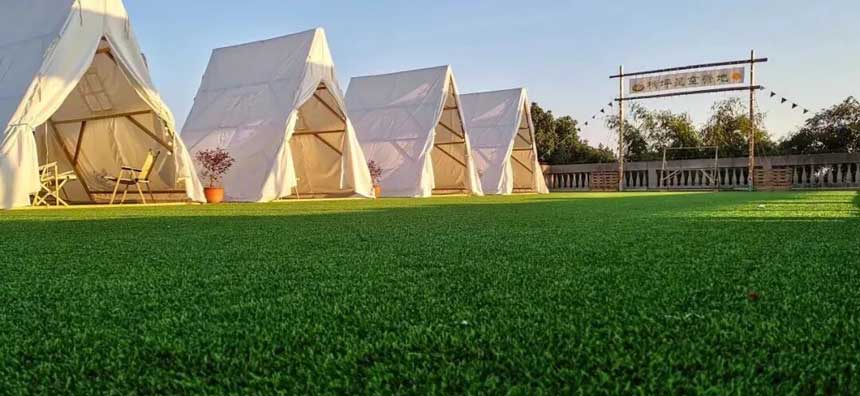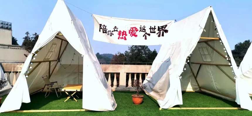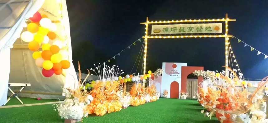 精致的露营帐篷 绿色的大草坪 木质的桌椅 走进清新的田园世界 去看一次隐藏记忆里的夜空