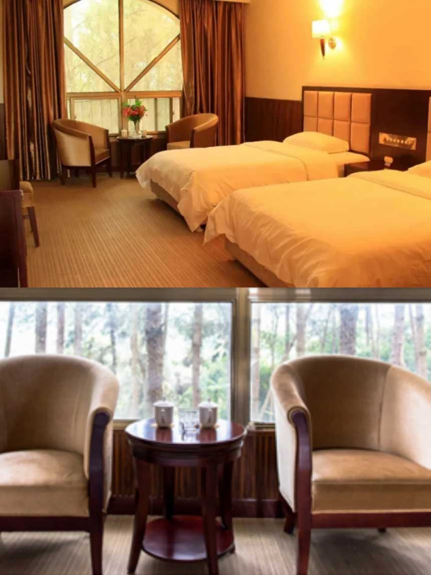 酒店可同时容纳约220人住宿,分别墅和酒店2种住宿环境。别墅共2栋,酒店配有标准间、三人间2种房型。