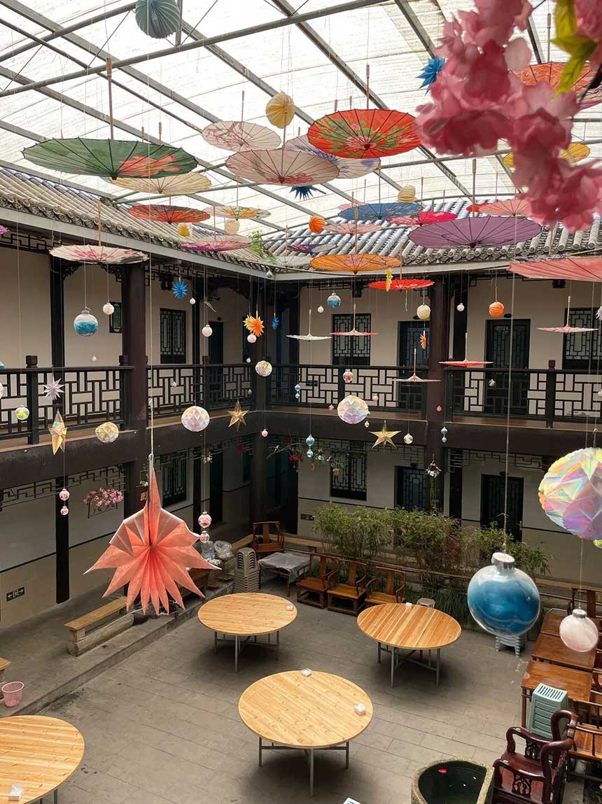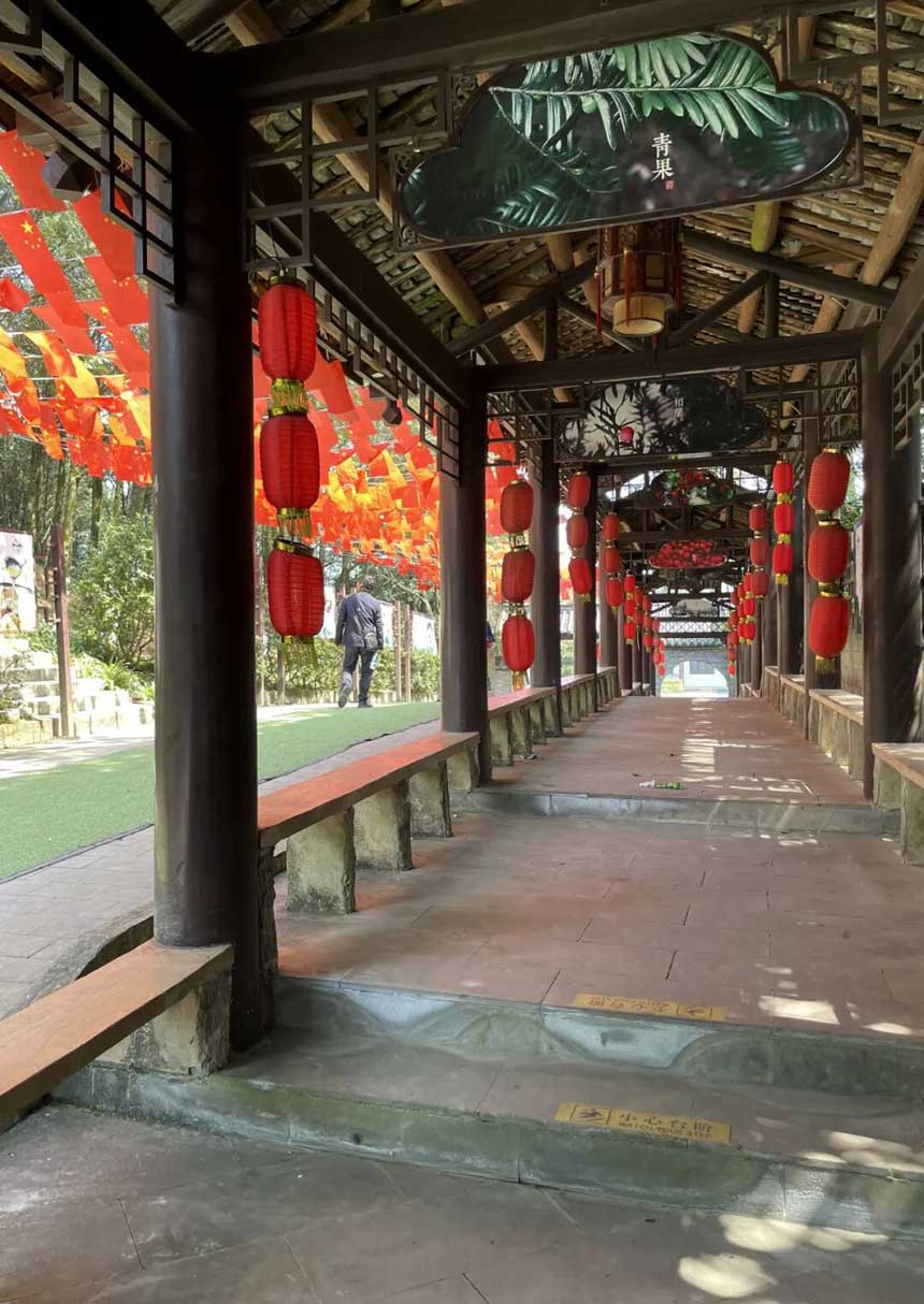 山庄漫步 红豆书院就在 山庄接待处不远 穿过一条长廊就到了 这里不时还会传出 山庄的非遗老师 给小朋友上课的声音