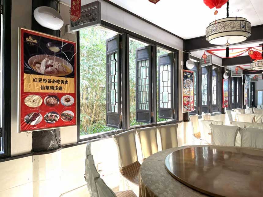山庄美食 鱼米香酒楼 餐厅也是传统酒楼的风格 地方很宽敞 山庄外还有个坝子 可以享受露天美食