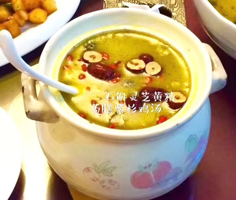 我们品尝了山庄的特色菜 仙草鸡汤锅 刚出锅的鸡汤特别鲜美 再配上仙草,吃完还能清热、 消暑,夏天必尝