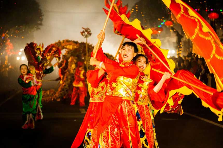 更惊喜的是 现场特设非遗互动体验区 你可以亲手舞动龙具 在传承人的指导下 做一回“龙的传人”