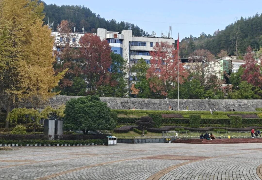 情侣山下的大众广场行居然是隐藏的银杏王者!环绕广场四周的银杏叶陆续都黄了,树下的石凳,坐满在此休闲的市民。远处的枫香树叶也都慢慢变成了深红,与那一片片的金色相映成趣。