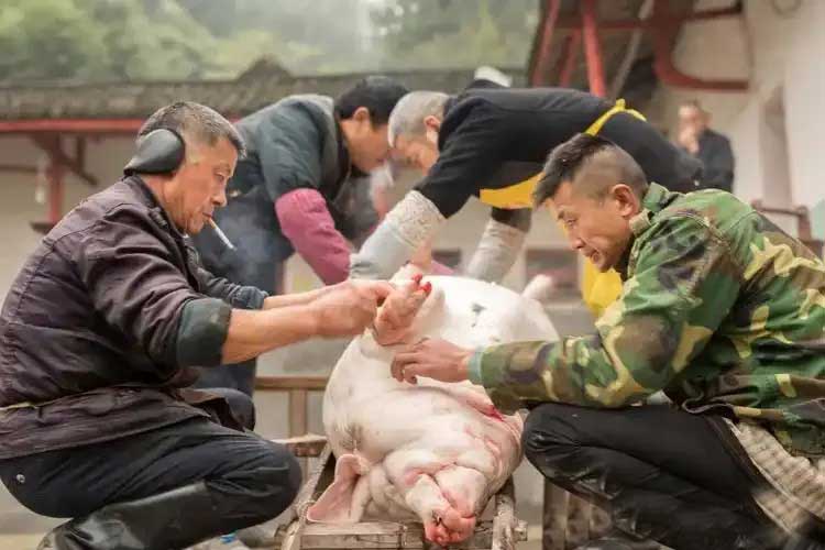农村宰杀土猪的流程讲究“顺时而为”,通常会选在晴朗清晨先由几位力大的壮汉,配合经验丰富的屠夫,按住猪身固定在很宽的板凳上,利落放血后,浸入温水褪毛,随后开膛破肚、清理内脏,整个过程分工明确,邻里都会主动前来帮忙。宰杀后的猪肉再按部位分割,里脊肉做滑肉,五花肉备回锅肉,内脏则当天现烹,确保食材新鲜。