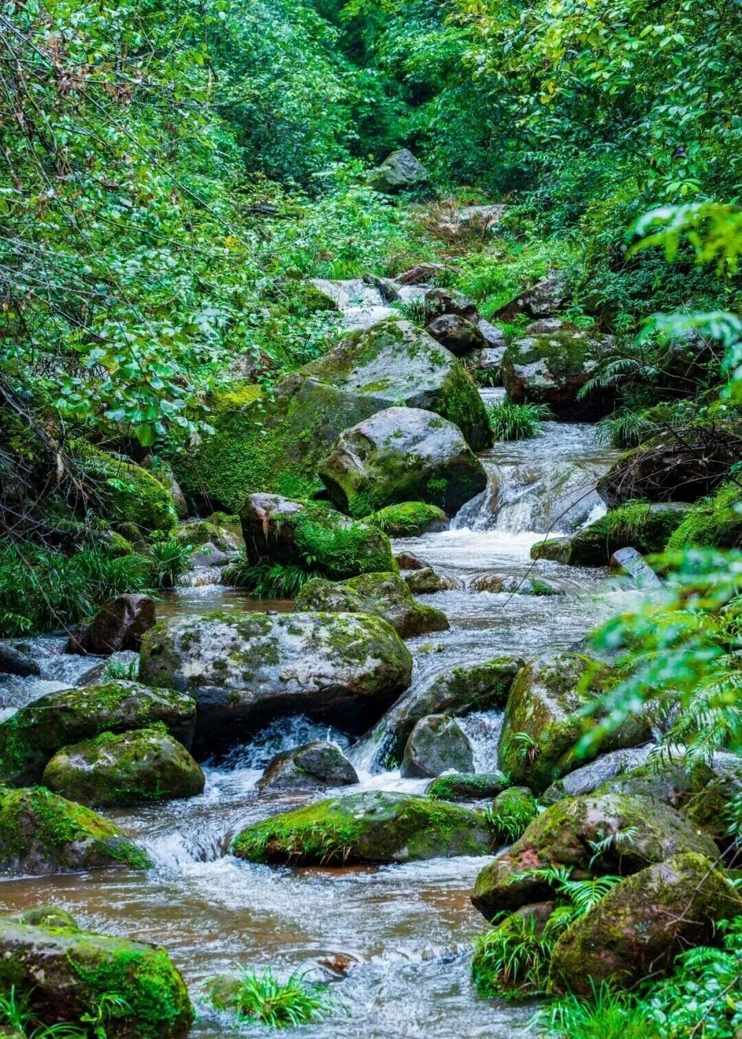 沿着山中小溪寻溪而上,是另一番治愈溪水在墨绿色的石头间缓缓流淌和溪畔的野花、苔藓诉说着冬日少见的生机
