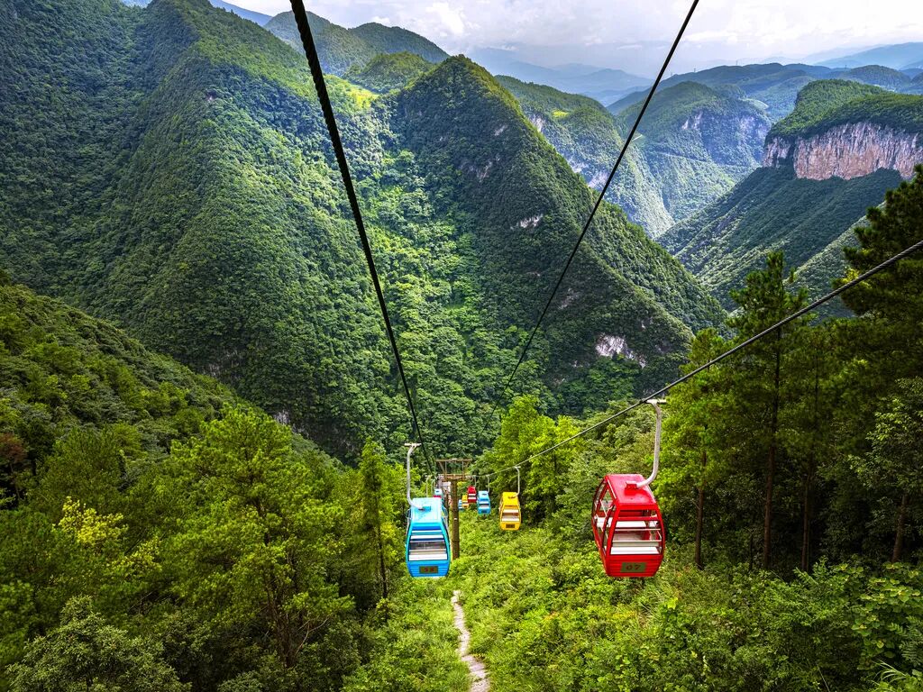 武陵泰斗”索道:这是亚洲最陡的往复式索道之一,坡度达42.6度,垂直落差300米,乘坐索道可以俯瞰峡谷全景。