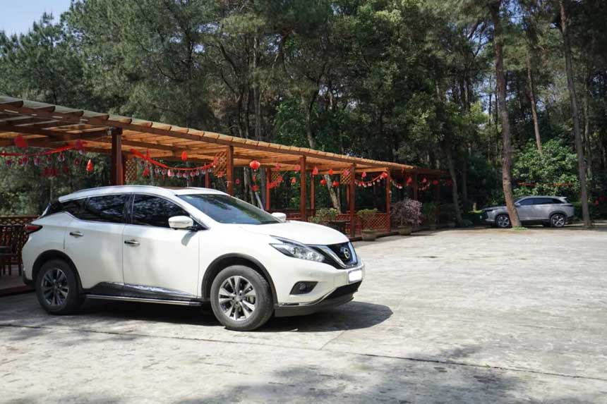山庄场地大 车不仅可以停在大门外 也可以开进去 停在下面