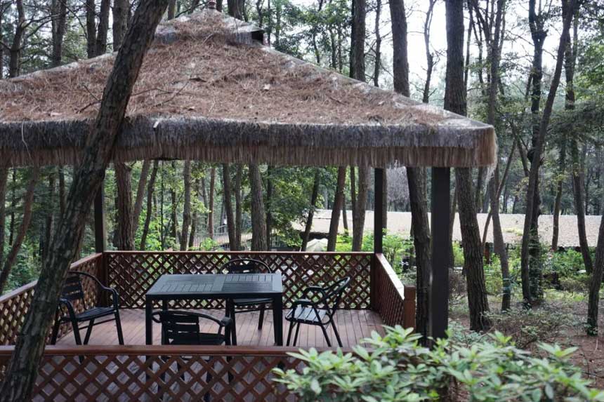 山庄就在森林里面 吃完饭后就可以 随意出去散散步、消消食