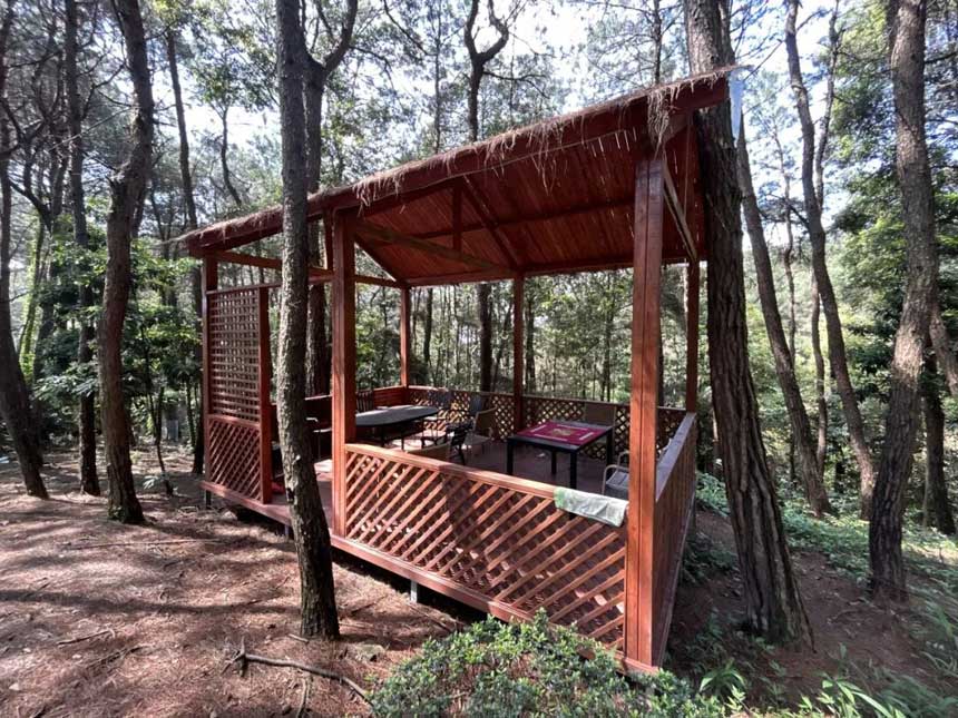 到森林里来避暑 最想要的便是 找个乘凉地 喝喝茶、聊聊天 真的安逸