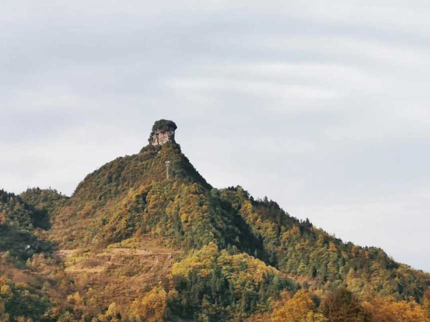 导航“贤婆岭”,便能直抵村落腹地。四周都是醉人的金黄。附近还有小指拇山,被众多网友誉为“重庆版梵净山”。