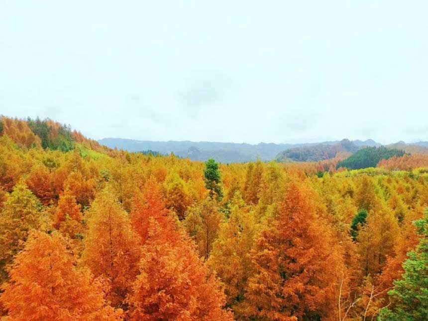 大有镇位于金佛山东麓,在夏天是耍水圣地,在初冬却上演“黄金时代”。