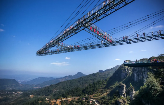 如果说万盛的冬日有最刺激的音符,那一定来自梦幻奥陶纪悬崖边此起彼伏的尖叫与欢呼。这里早已不是单纯的景区,更是被各大热门综艺选中的“勇者试炼场”,快来打卡明星同款高空项目吧!