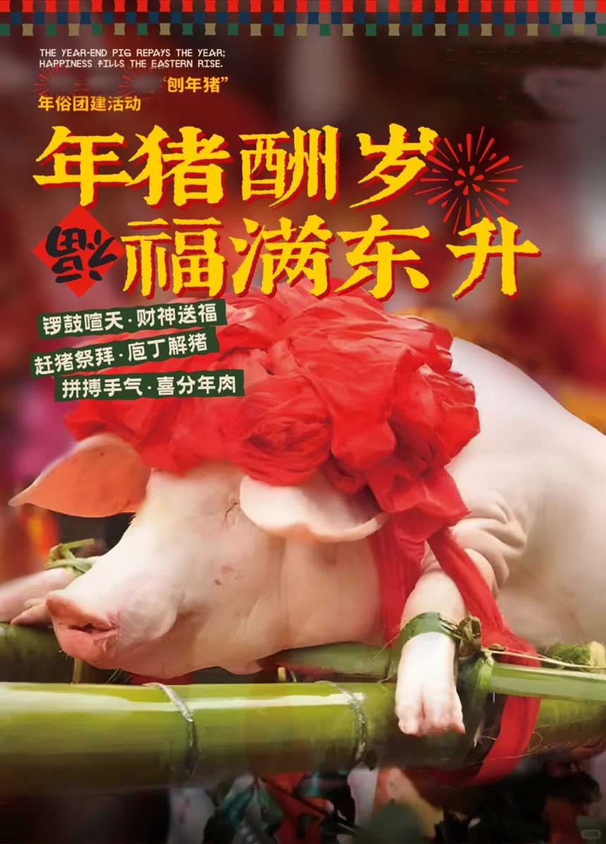 1️⃣绝对的熟食土猪 源头可追溯 2️⃣拉 赶 祭祀仪式!体验感拉满 3️⃣舞狮舞龙 氛围杠杠好(观赏➕体验哟) 4️⃣热气腾腾 现场熬制的刨猪汤蒸笼菜 5️⃣绝美的山野环境 热闹的同时疯狂出片 6️⃣可以点篝火!!!可以放烟花!!! 行走在中国最美休闲乡村里,欣赏着金灿灿如暖阳般的黄金香柳,在冬日里奔赴一场最具仪式感最热烈的杀猪宴吧!