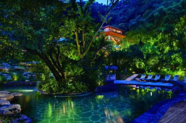 藏在树影光影间的 私密汤池 每一步都是景 每一眼都是画