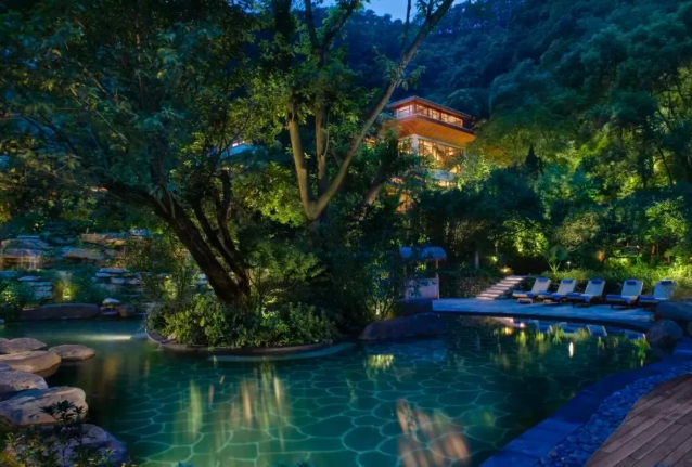 隐匿于青山江水间 26座森林泡池如星辰散落~ ✨江景汤屋、竹林SPA、云端茶吧… 每个角落都藏着诗意惊喜! 🌊 高山灵秀融进温泉 38℃恒温暖流包裹全身~ 📚 连空气都带着书香 这才是治愈系泡汤的天花板!