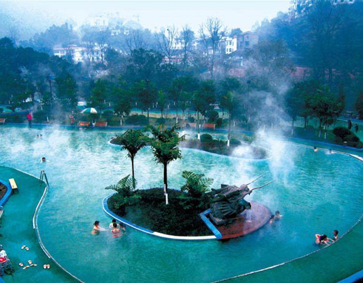 这里同时具有冷泉和热泉,拥有近百个造型丰富、特色各异的养生温泉泡池及别致的温泉汤屋,四季均可泡汤。水温常年保持在38℃—52℃,水中富含氡、氟、锶、锂等多种矿物质,对伤风感冒、肩周炎、风湿痛、呼吸道疾病等有特别疗效。还有亚洲唯一的喀斯特温泉热洞“天然桑拿”,具有洞穴理疗与温泉理疗双重疗养价值。