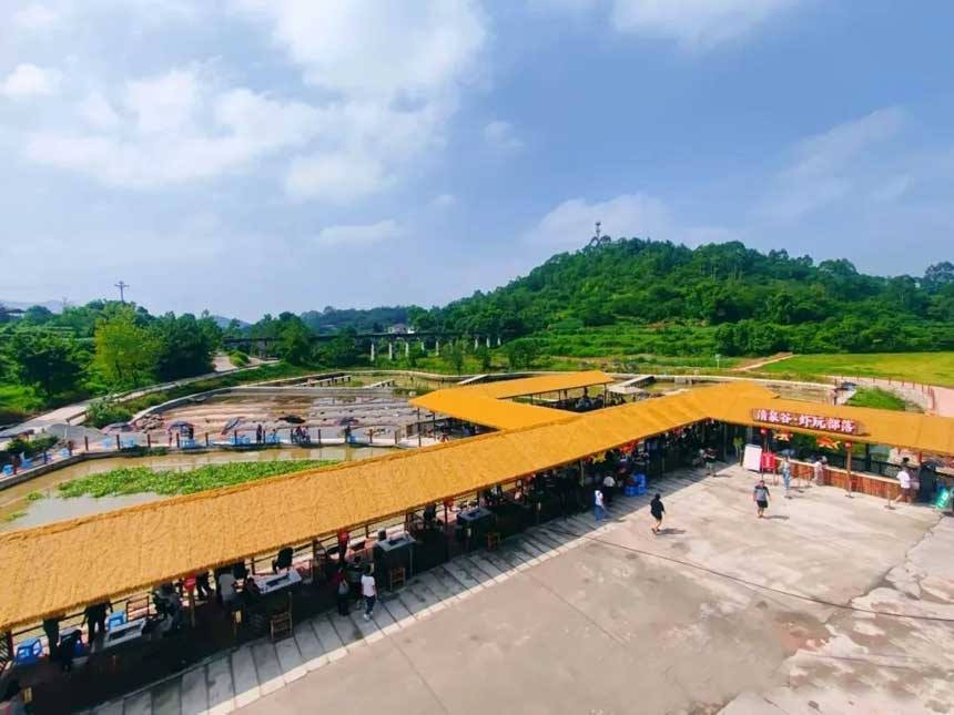 这个依托缙云山纯天然矿泉水打造的休闲渔旅综合体,200余亩的区域里,有“渔时光小院”“虾玩部落”“渔野营”“渔潮社”“渔乡Coffe”“鱼苗派对”等十六个场景,满足亲子度假与社群活动需求。
