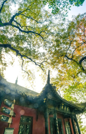 忠义广场到庙门的石阶湿漉漉的,泛着深青色。 这时候,你能听见自己的脚步声。 两旁的老树叶子落了大半, 枝干伸向天空,比夏天更显筋骨。