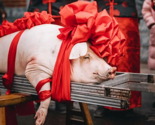 要是想体验最地道的年猪民俗 清栖谷绝对是首选! 红绸裹着的“猪王”被抬着巡游 这一路是凑热闹的绝佳之选