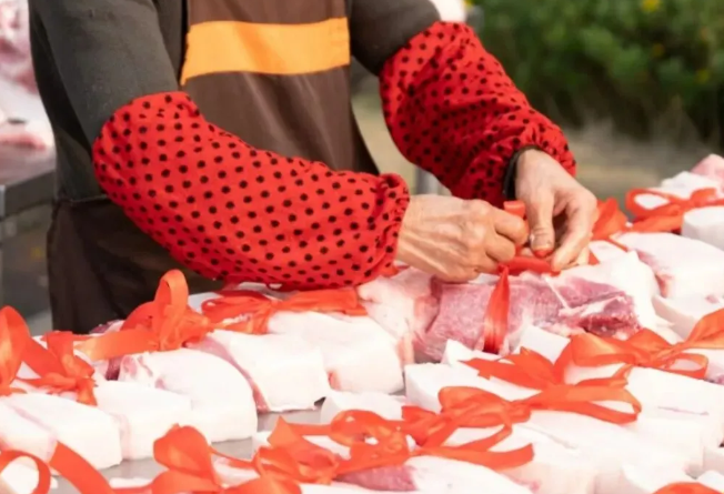 手起刀落间,案板上的猪摇身一变 成为饭桌上香气四溢的地道刨猪汤 除去这一桌和亲朋好友共享的一餐 多余的肉则被小心腌制成腊肉香肠 静待过年来品尝滋滋冒油的咸香