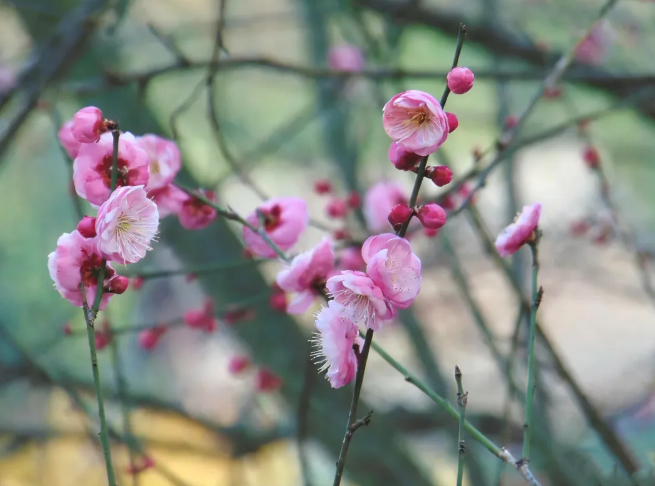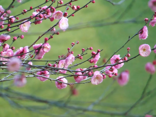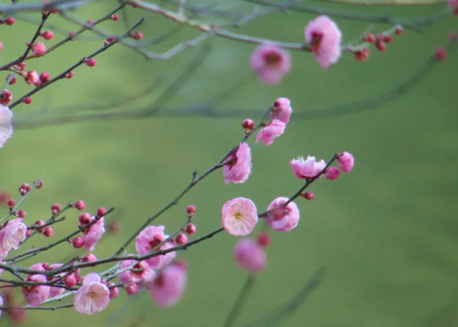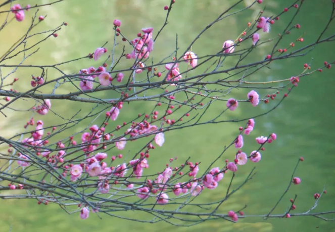 有的梅树显得十分疏朗 一枝一枝的姿态格外清晰 有的枝条遒劲向上 花朵昂首向天 有的却温柔垂下 让人忍不住轻轻嗅一嗅那缕幽香
