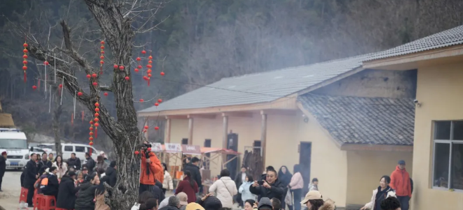 最让人赞不绝口的,当属那场热气腾腾、烟火气十足的刨猪汤盛宴!13点整正式开席,10人一桌围坐成圈,刚入座就被桌上的香气勾得垂涎欲滴。萝卜的清甜与排骨的鲜香完美融合,舀一勺入口,暖意从舌尖直抵胃里,浑身都舒展开来。紧接着,回锅肉、炒猪肝、腊香肠、白菜血旺汤等全猪宴菜品陆续上桌,一口下去超满足。席间,大家一边大快朵颐,一边畅谈徒步与自驾的趣事,热闹得像一家人。另一边,“抬猪上凳、分肉纳福”的杀年猪仪式正在上演,农户们动作娴熟,吆喝声、与围观者的惊叹声交织在一起,满满的乡土烟火气,这才是刻在记忆里的过年仪式感!
