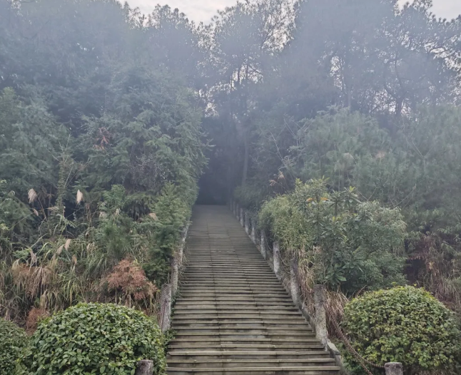 这一天雾很大,所以照片看上去都是雾蒙蒙的。这里没什么好讲的,沿着铁山云梯一直往上爬就是了。