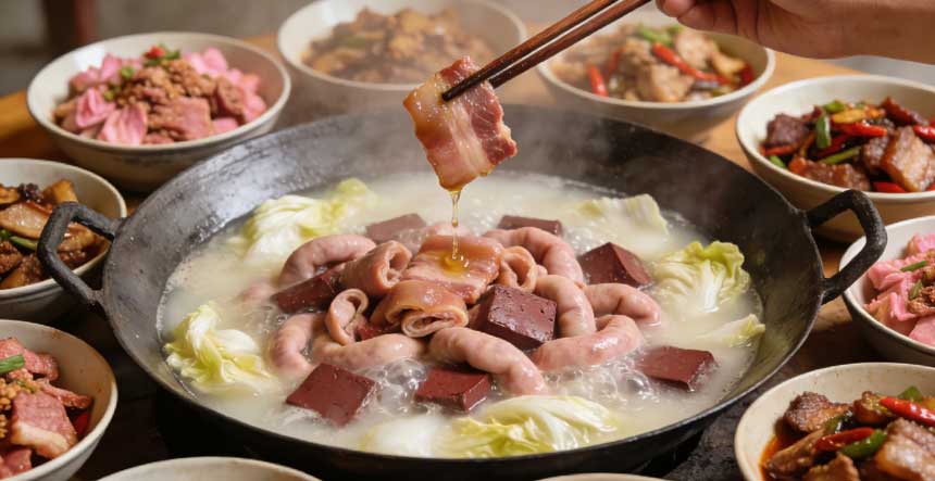 现在这刨猪汤也玩出了新花样,江津、黔江这些地方直接办起了年猪节。不光能吃好喝好,还能看年猪巡游、逛年货市集,临走再拎一块新鲜土猪肉、几斤农家腊肉,把年味打包带回家。