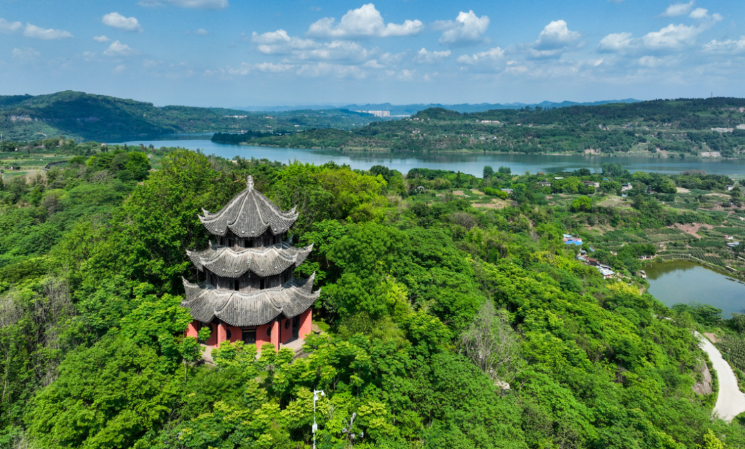 千年只是一瞬间四季不过在轮回从亭上向西眺望尽是满山苍翠合川美景尽收眼底