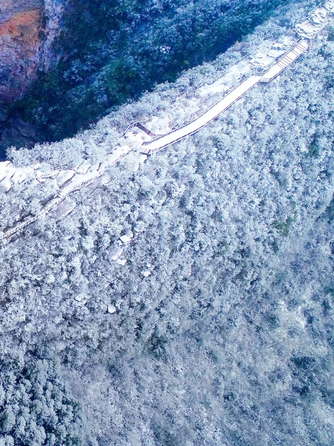 当3000米长的悬崖被冰雪封印,当火棘林在白雪中燃起"火焰",龙缸就把"惊险刺激"和"极致浪漫"这两个八竿子打不着的词,完美融在了一起。站在云端廊桥往下看,是千米冰瀑的震撼;远眺群山,又是北国风光的苍茫。