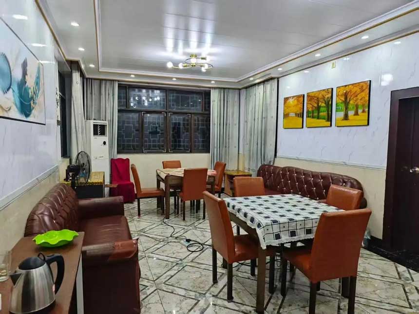 这里真正做到了吃得好、住得好、耍得好。正餐时间,大盘菜肴陆续上桌,辣子鸡外酥里嫩,腊味拼盘咸香入味,现炒时蔬脆嫩爽口,味道正宗分量又足,一群人抢着吃才够味。酒足饭饱后,娱乐项目随心切换,麻将房里笑声不断,KTV包厢里能尽情嘶吼,人多的话,宽敞宴会厅还能搭台搞歌舞活动,热闹劲儿直接拉满。