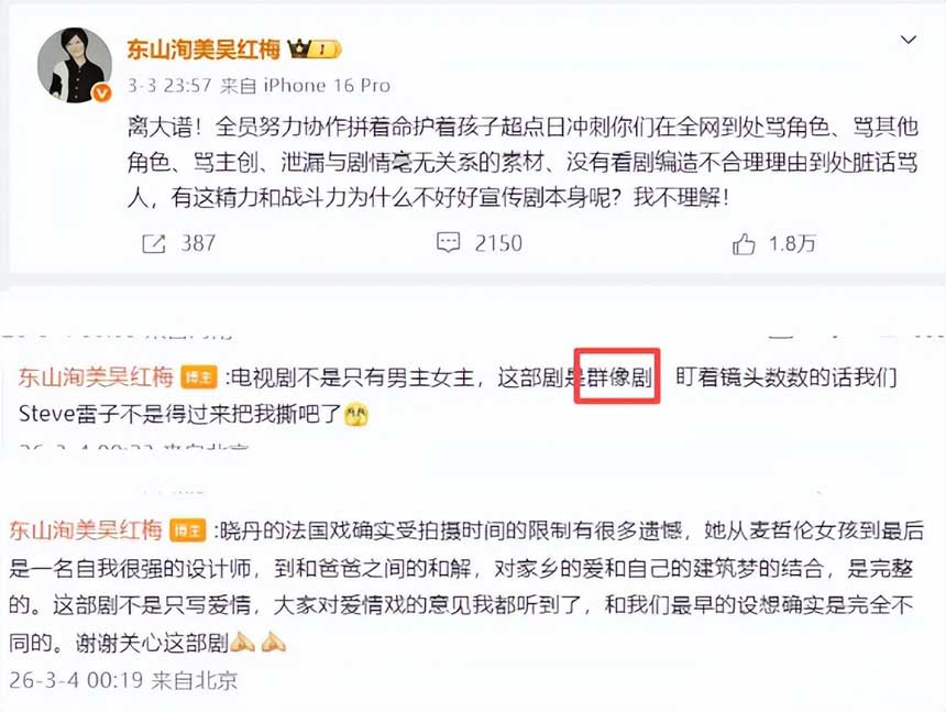 为了维护自己偶像,他们在剧组和制片人的评论下面质问,要求给一个合理的答复。