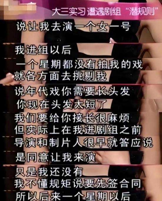 他去年在直播的时候就提到,对方通过面试之后进组,却数次遭到导演刁难,比如反复更改头发颜色,故意拖延拍摄到深夜等等,交流的时候暗示了潜规则,最终这位演员还是被替换。