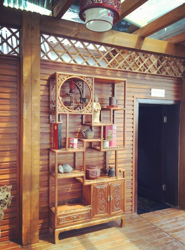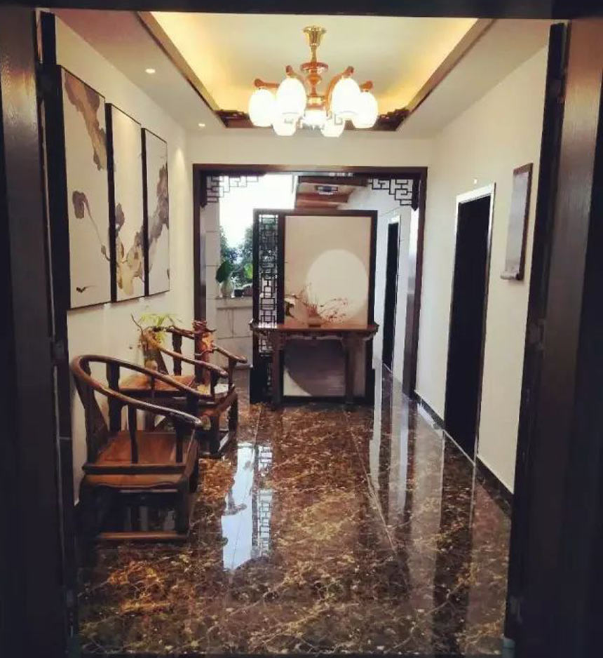 首先来到入户大厅,进门就能小憩一下,实木茶座,中国风壁画,瞬间被吸引。