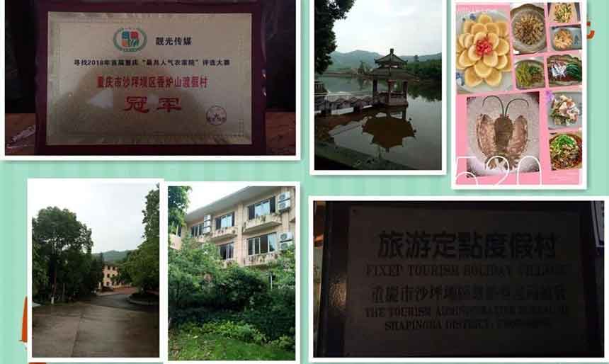 山庄驻足于重庆市沙坪坝区香炉山村,是一个集垂钓、烧烤、餐饮、娱乐为一体的乡村星级农家乐。 山庄一直坚持“绿色休闲农业,观光农业”路线,自种蔬菜,自养家畜,自养鱼类等特色土菜飘香,鸡、鸭、鱼、羊、系列风味独特,金牌烤全羊系列