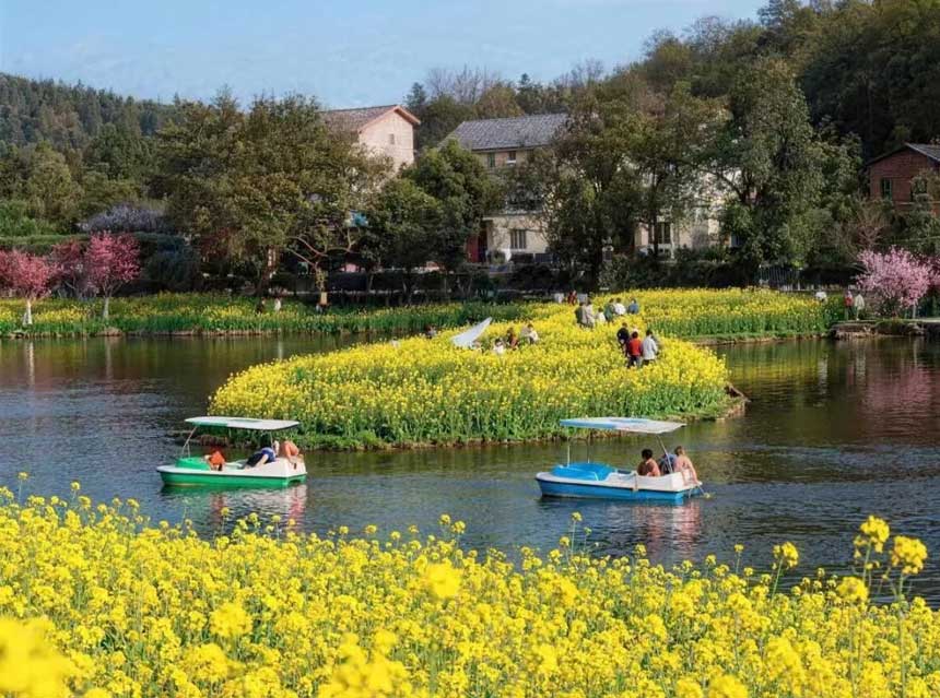 重庆主城1h直达云林天乡把春天焊在湖里,云林天乡农家乐白鹭源山庄可以在房间里面就可以赏花