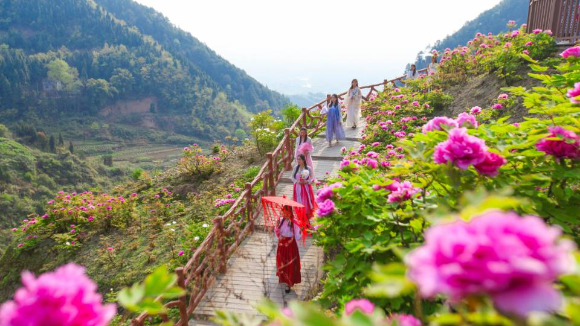 垫江明月天香旅游度假区,​悬崖秋千、丛林飞车、彩虹滑道、赏牡丹