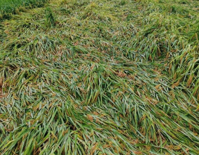 最近气温降下来了,降幅超过10℃,同时起风了,风级4-7级,大树吹的沙沙响,进入灌浆期至成熟期的水稻可不经吹,尤其是偏施氮肥、病虫害发生严重或者抗倒性较差的品种,大风一吹就成片倒...