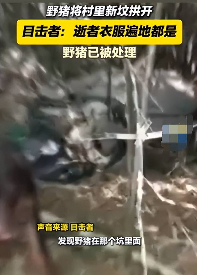 野猪将村里新坟拱开 逝者衣服遍地