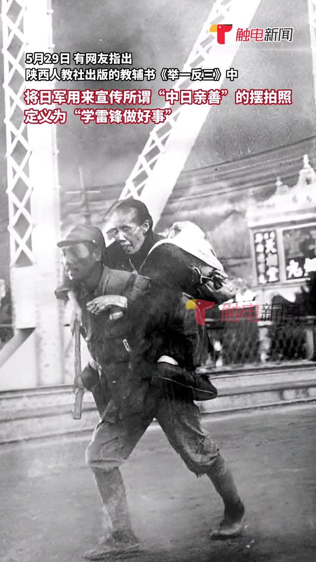 不能容忍,也不能原谅!陕西小学语文教辅将侵华日军背老人照片定义为“学雷锋做好事”? 近日,有网友爆料,陕西人教社出版的教辅书《举一反三》中,有一页将日军在侵华战争期间摆...