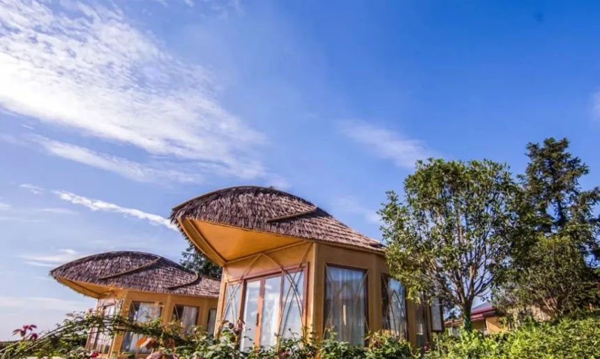 晚上入住景区金盆湖酒店、牡丹阁民宿,或是自带帐篷露营观星,在竹林的幽静中安稳入眠。