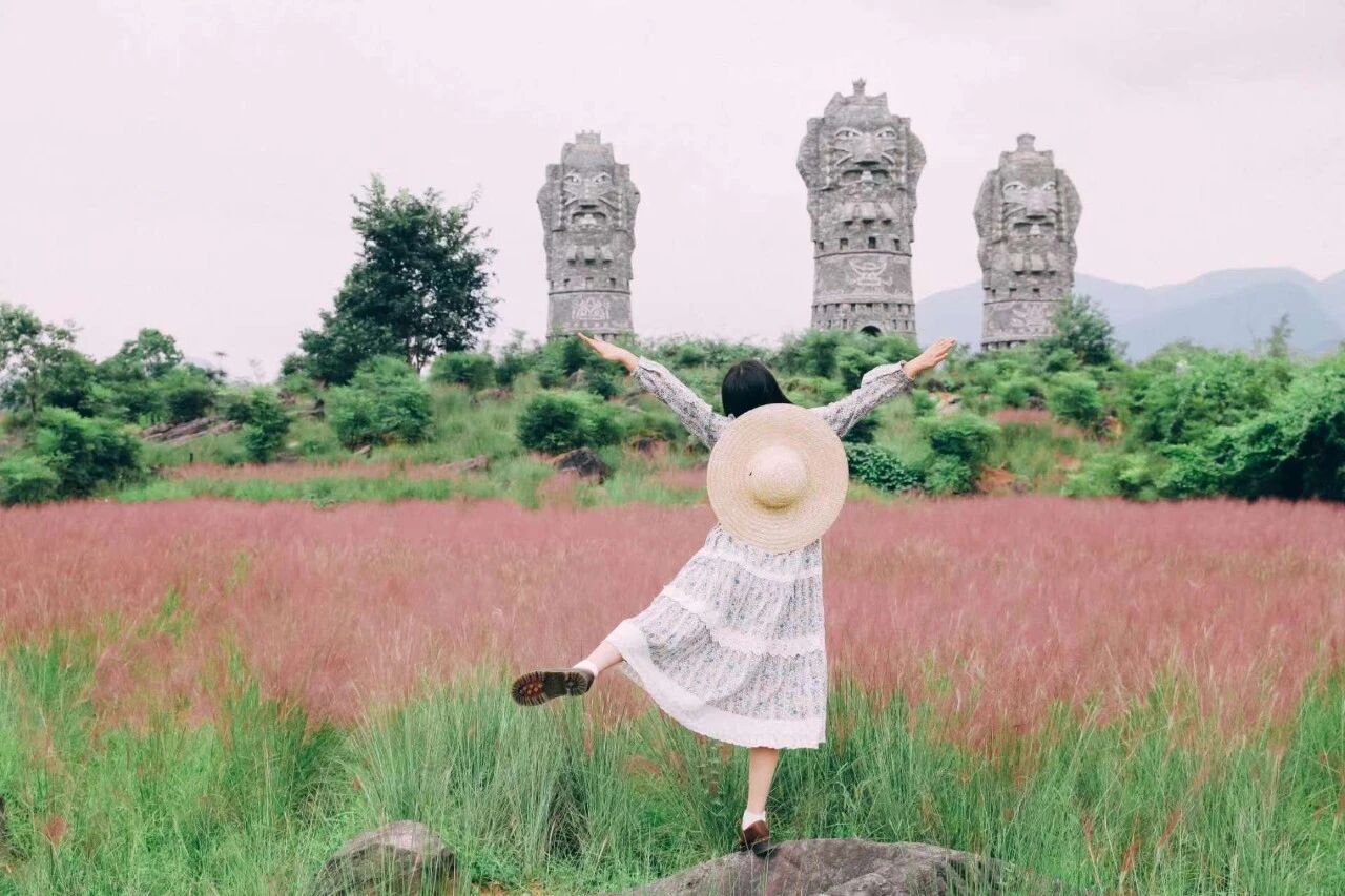 秋日的叠石花谷是被打翻的粉色颜料盘粉黛乱子草初放与层叠的奇石相映成趣漫步花间小径看云卷云舒 听风吟鸟语仿佛置身童话仙境宁静与浪漫在此刻撞了个满怀