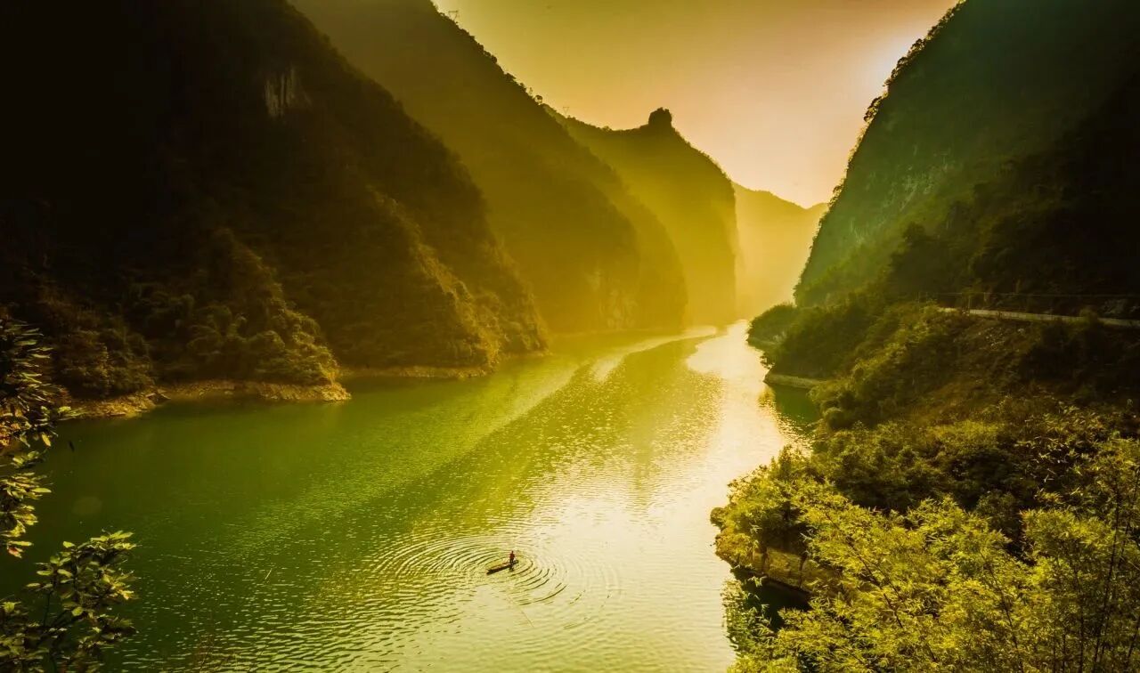 藏在自然的鬼斧神工峡谷幽深 碧水似翡更有奇石似龟 静卧千万年 乘船穿行其中崖壁高悬如垂天之幕碧潭映天似倒悬星河每一寸都是自然精心雕琢的秘境