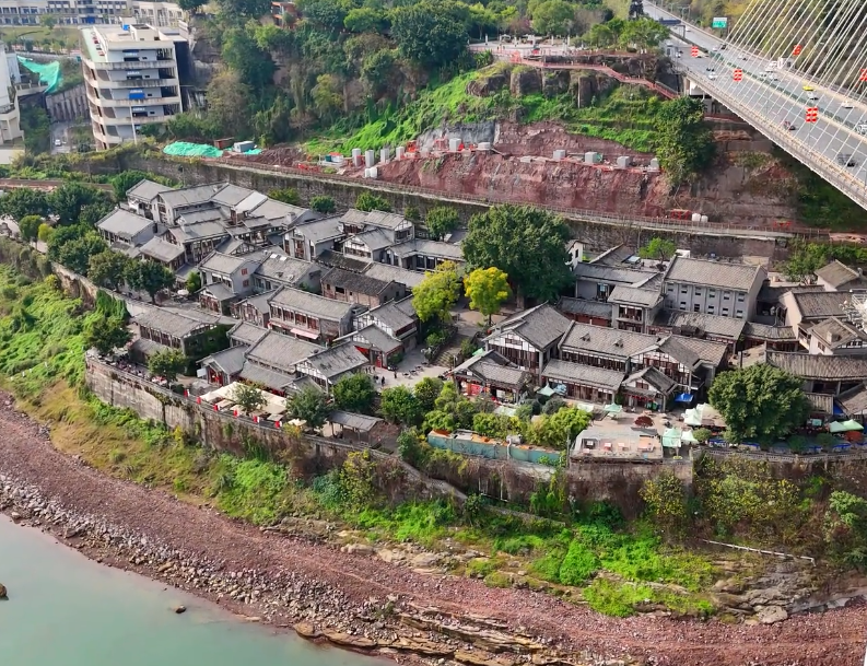 马桑溪古镇因马桑树而得名,因乡绅设义渡而扬名,明清鼎盛时期曾为重庆长江上最大的渡口,大渡口即源于马桑溪。古镇是重庆主城区唯一最具码头文化的古镇。整个街区临江而上,分为四级台阶,重现了历史上形成的三街九巷关系结构,等船休息的待渡亭进行恢复性重建,最大限度还原了历史街区的原始风貌。