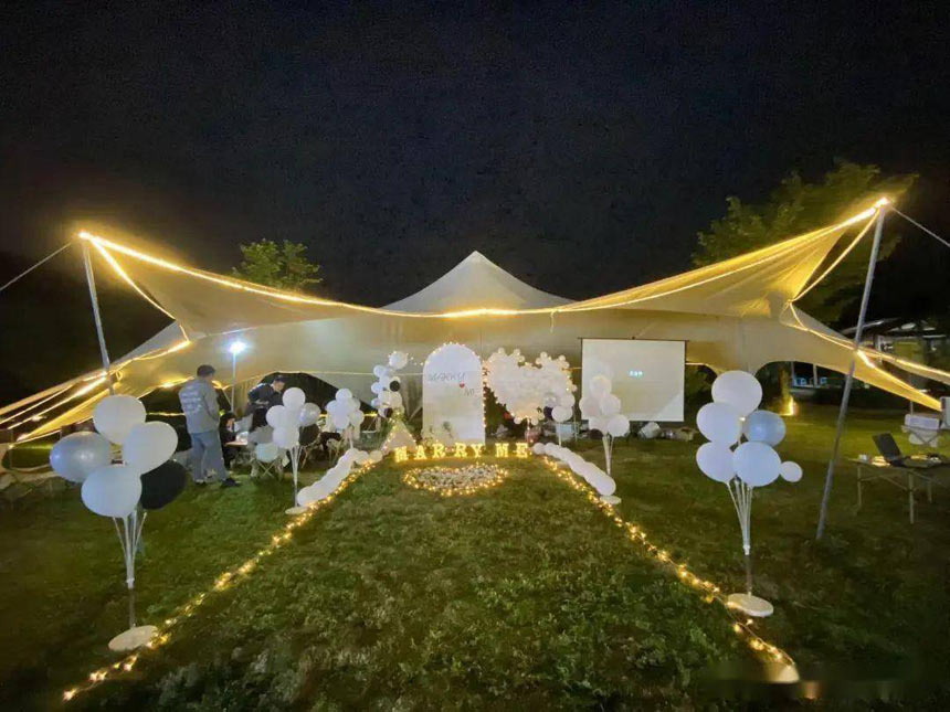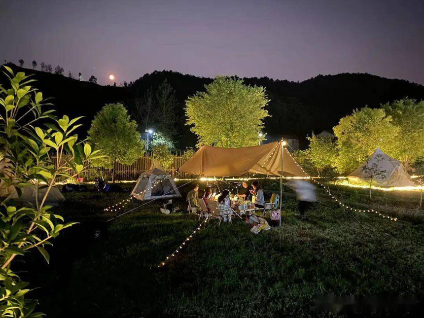 2.露营:草坪功能分区很明确,有1号大草坪适合团建、包场,2号草坪周围全是乔木大树,非常适合搭建天幕、帐篷、吊床等等,3号草坪私密性较好,非常适合家庭亲子活动。