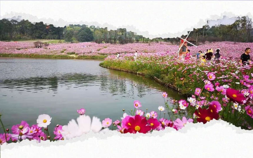 微风拂过山峦 300亩格桑花在湖畔翩翩起舞 来自藏地、被称为“幸福花”的格桑花 代表着幸福与吉祥